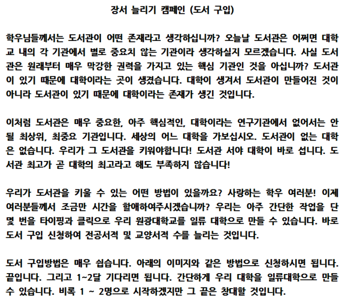 어때요? 참쉽죠? ^^ 여러분들의 전공도서을 많이 신청해주십시오. 그래야 우리 대학교가 발전할 수 있습니다. 부탁드립니다.