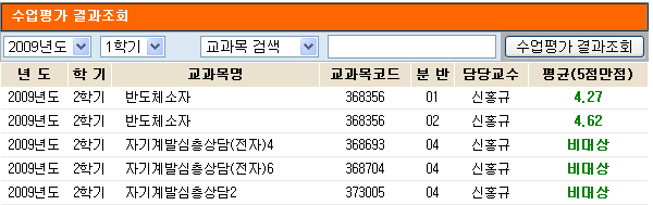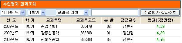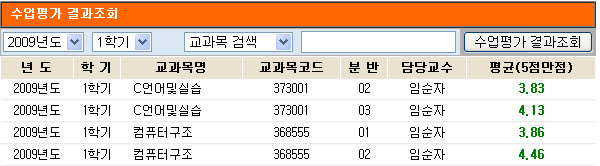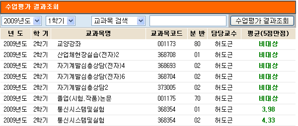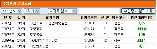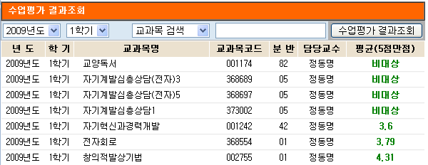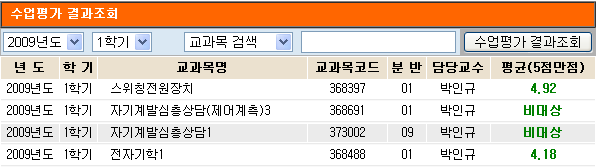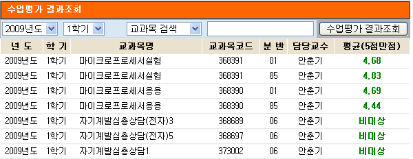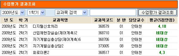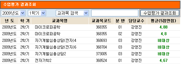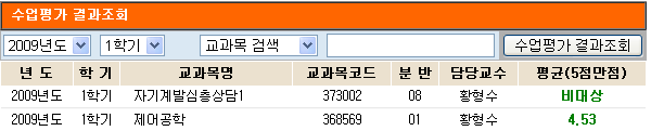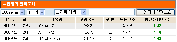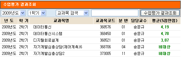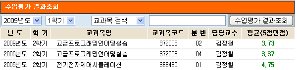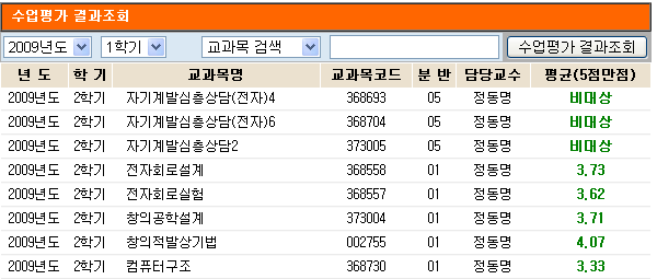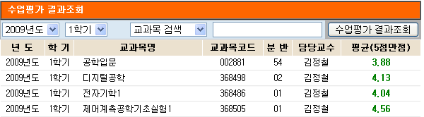 10' DigitalArchive 2009학년도 전자제어공학부 교수별 수업평가결과