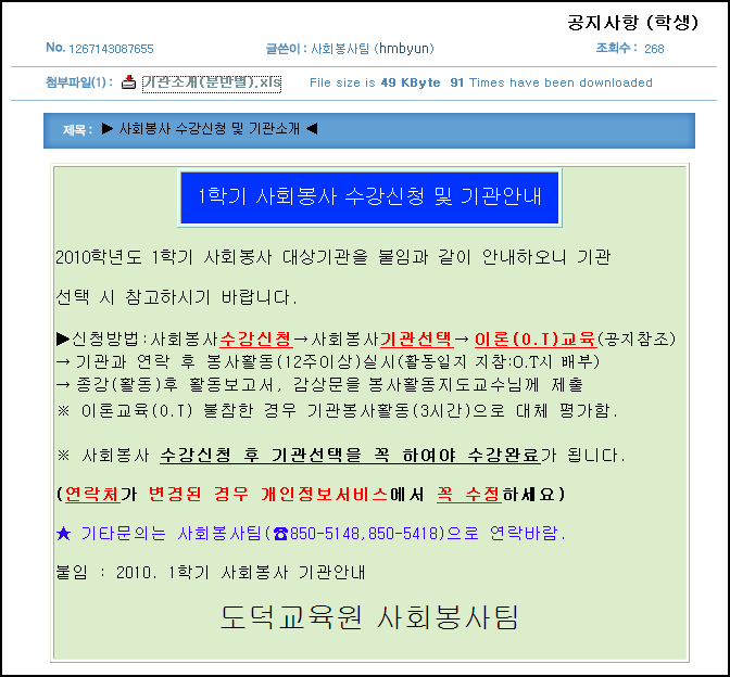 10' DigitalArchive 2010학년도 1학기 사회봉사 수강신청 및 기관안내