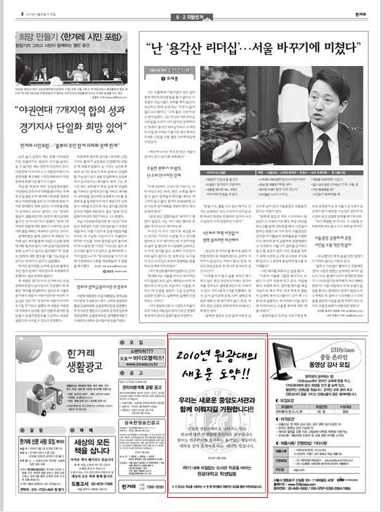 한겨레 4페이지 하단 신문광고 내용 ( http://gall.dcinside.com/list.php?id=wonkwang&no=49164 가운님 감사합니다 ^^ )