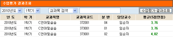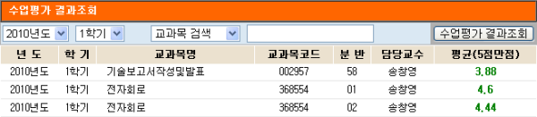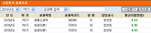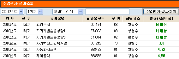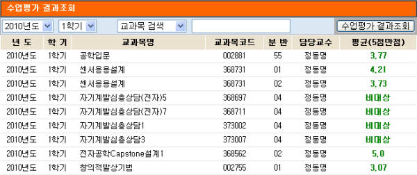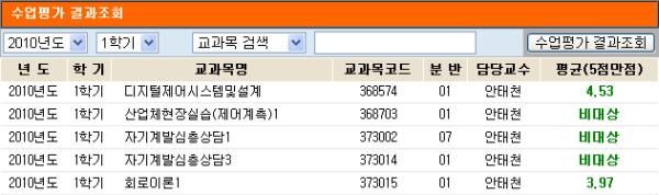 10' DigitalArchive 2010학년도 1학기 전자제어공학부 교수별 수업평가결과 (일부)