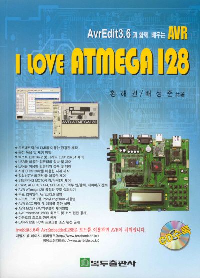 이 수업은 실험 수업이라 조교선생님께서 진행하는 수업입니다. 2009년도 1학기 마이크로프로세서실험 조교선생님은 "정석" 선생님께서 해주셨습니다. 이번 2009년도 전자공학과 석사과정 초반을 밟고 계시는 정석 선생님은 성격이 매우 차분하시고 되도록 많은 것을 알려주시려고 노력하시는 분입니다. 수업교재는 아래와 같이 "I LOVE ATMEGA128"입니다.